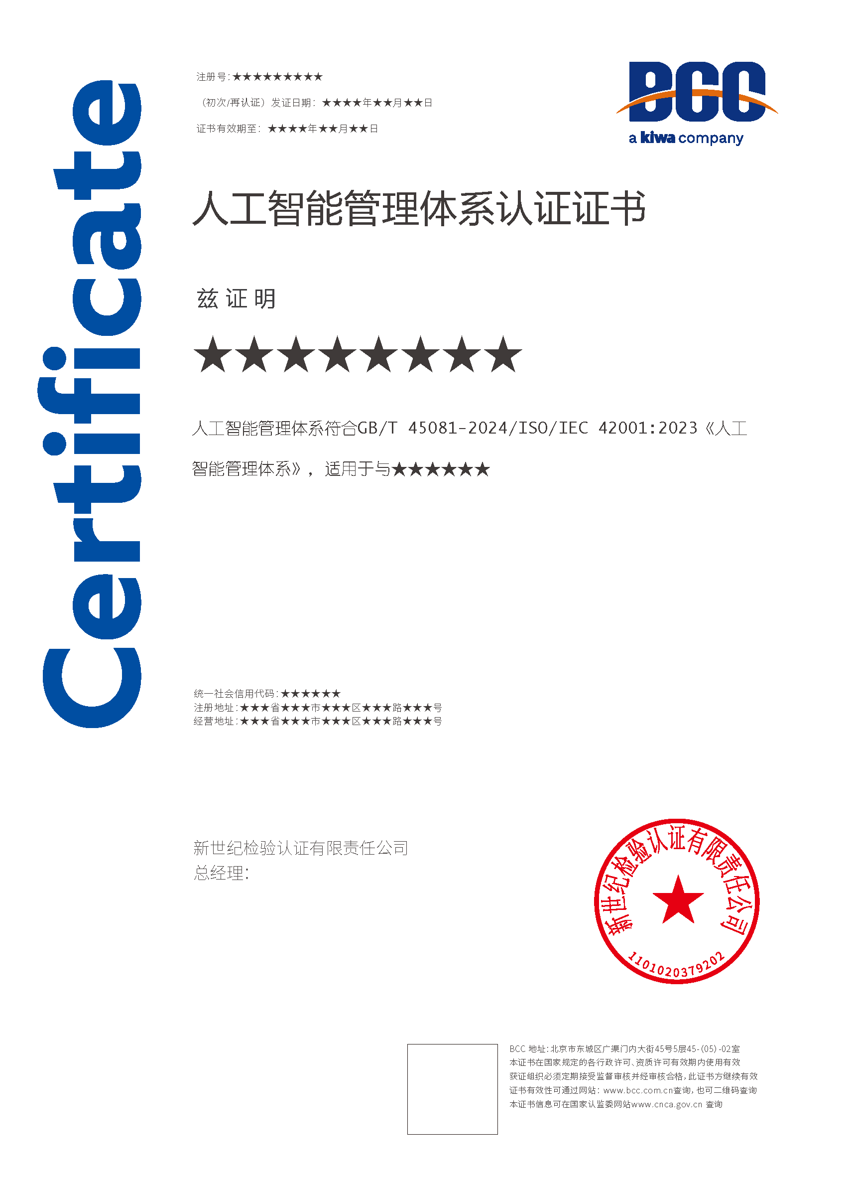 申請(qǐng)人工智能管理體系認(rèn)證時(shí),需提供以下資料: